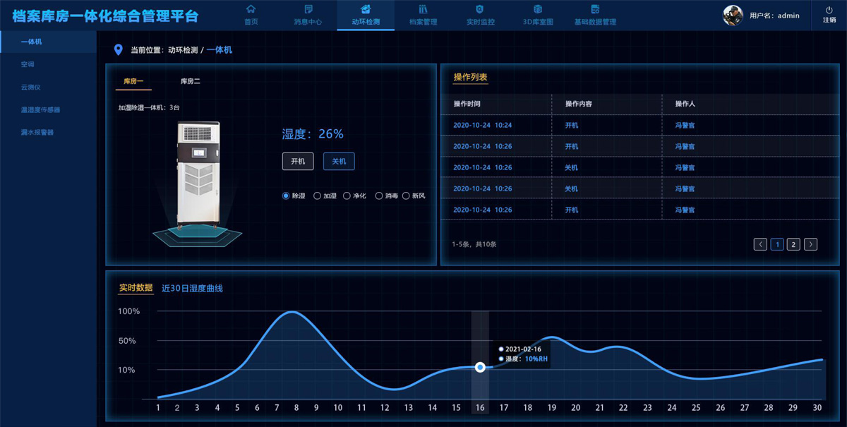 档案存放的寿命,和空气中的元素有很大的关系,档案库房内的甲醛,PM2.5,粉尘等,影响着档案存放时间,暴露在这种环境中的档案,增加被腐蚀的风险,在环境质量不达标时,系统会打开新风系统进行调整,将档案馆内的空气质量调整到正常范围之内。