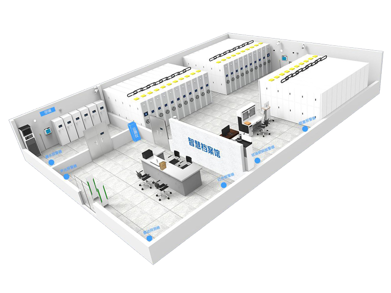 创显信息科技智能档案库房整体建设采用一体化平台结构设计,高度集成了库房环境测控、库房安全防护、库房档案管理、库房存储装置管理等多项系统,实现了平台化统一管理的目的。