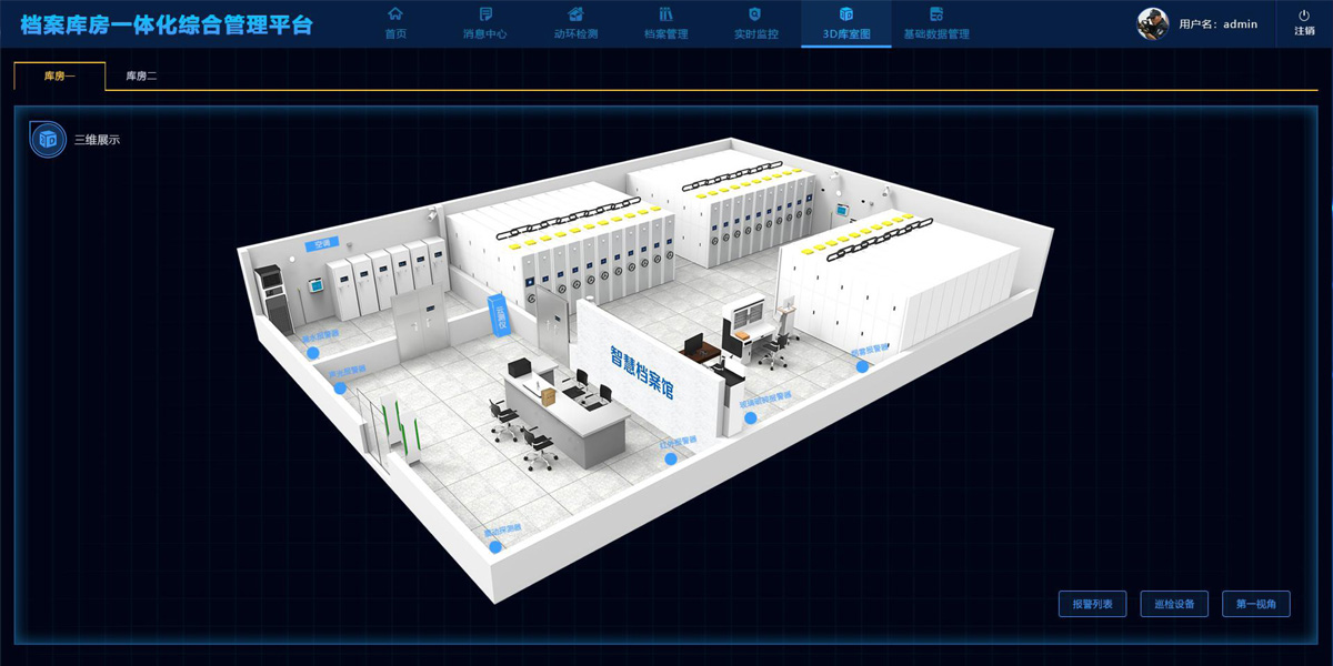智能化档案仓储是利用可视化技术,构建数字档案仓储模型,通过三维仿真视图展示整个档案仓储的作业动态,实时监测档案入库、出库、存放等状态,合理调配库位,根据工作量对设备和人力资源进行合理调度,减少传统档案仓储管理模式下的资源浪费。