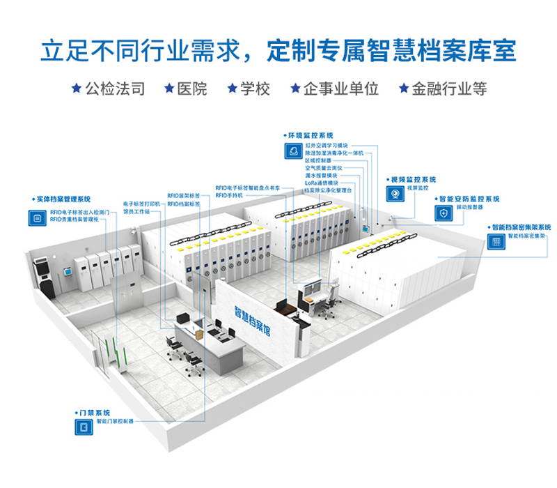 采用计算机技术、自动控制技术、通讯与信息处理技术相结合,把档案安全保护综合管理系统和一体化管理平台,有效解决档案安全“十防”(防火、防盗、防高低温、防潮湿、防水、防光、防尘、防有害气体、防虫、防霉)问题,降低管理人员劳动强度,提高档案管理工作效率,实现档案安全保护工作由传统的人工管理向现代智能化、科学化、人性化管理转变。